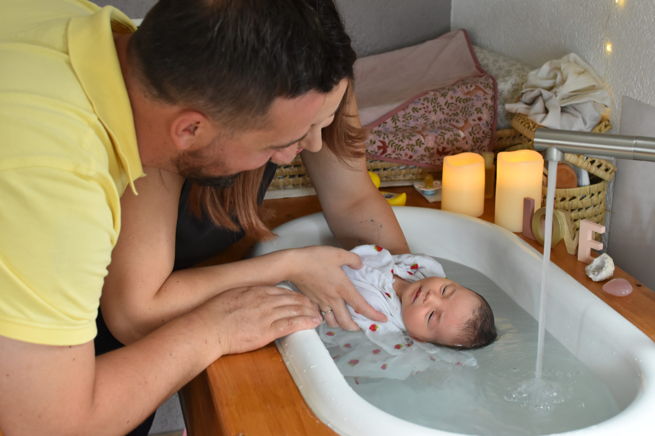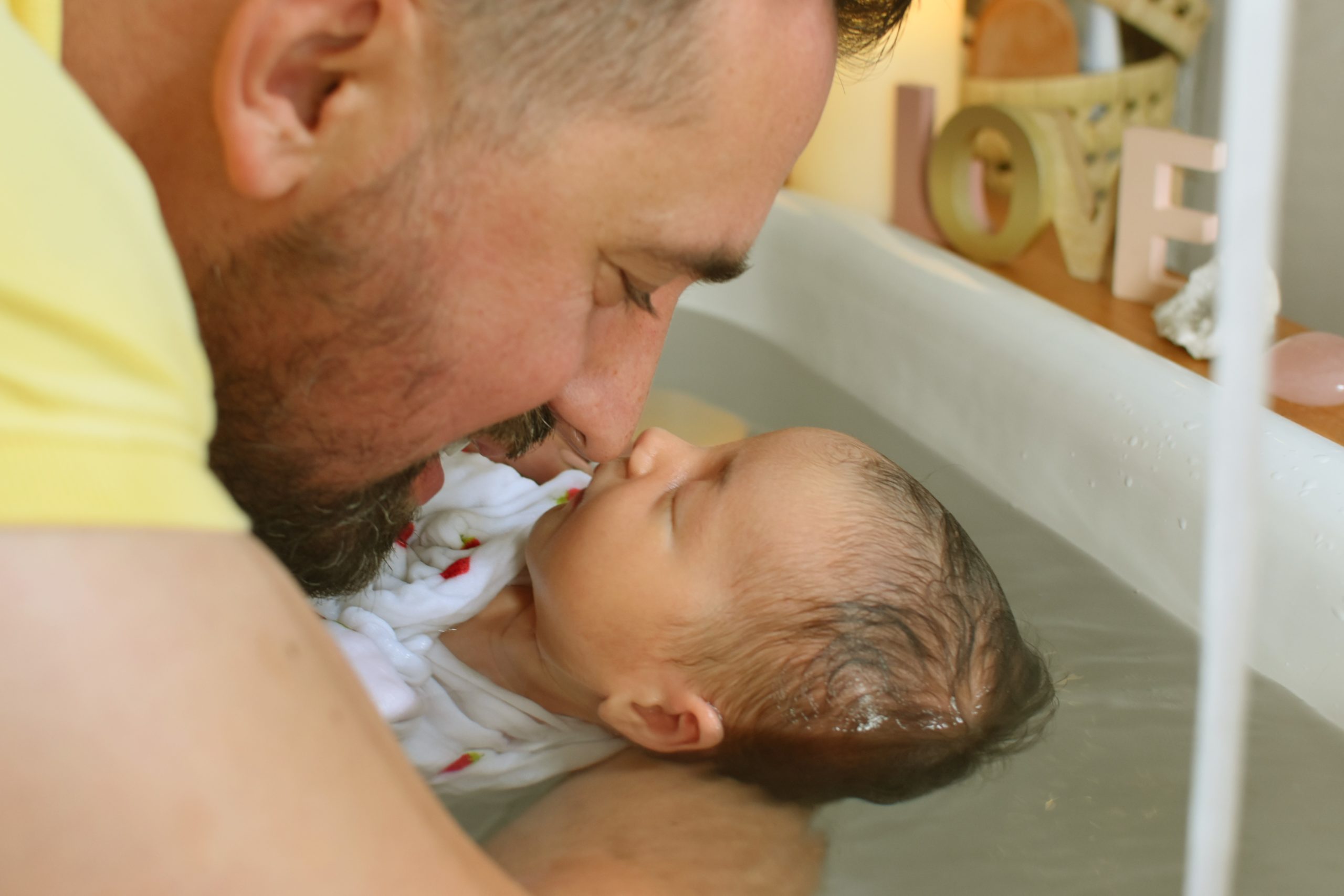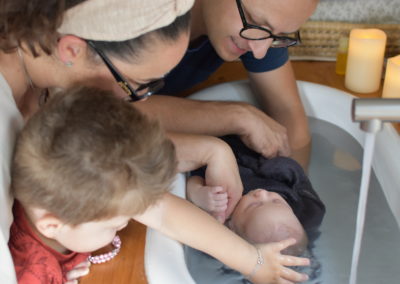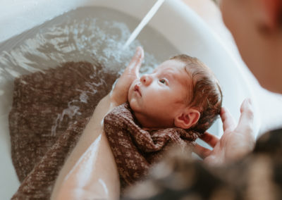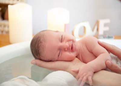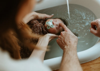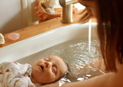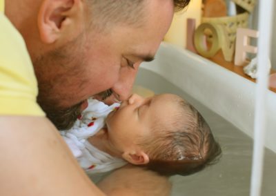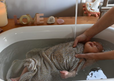 C’est bien plus qu’un simple bain… Un instant suspendu, un soin réparateur et libérateur d’émotions pour le bébé et les parents.