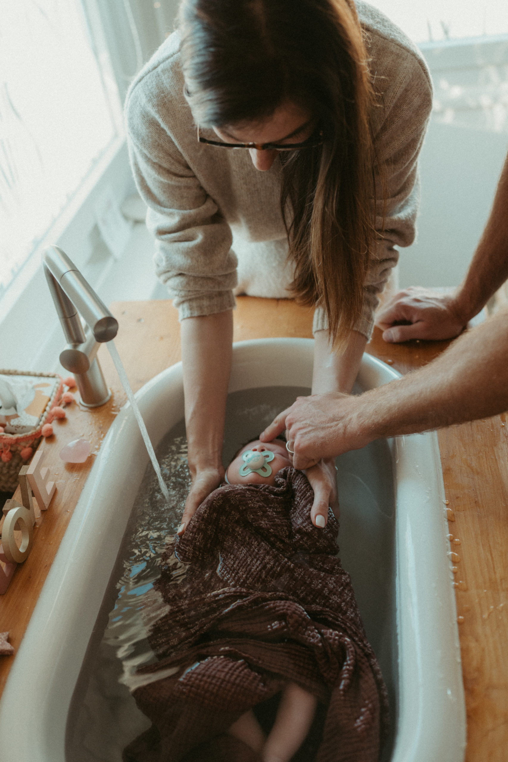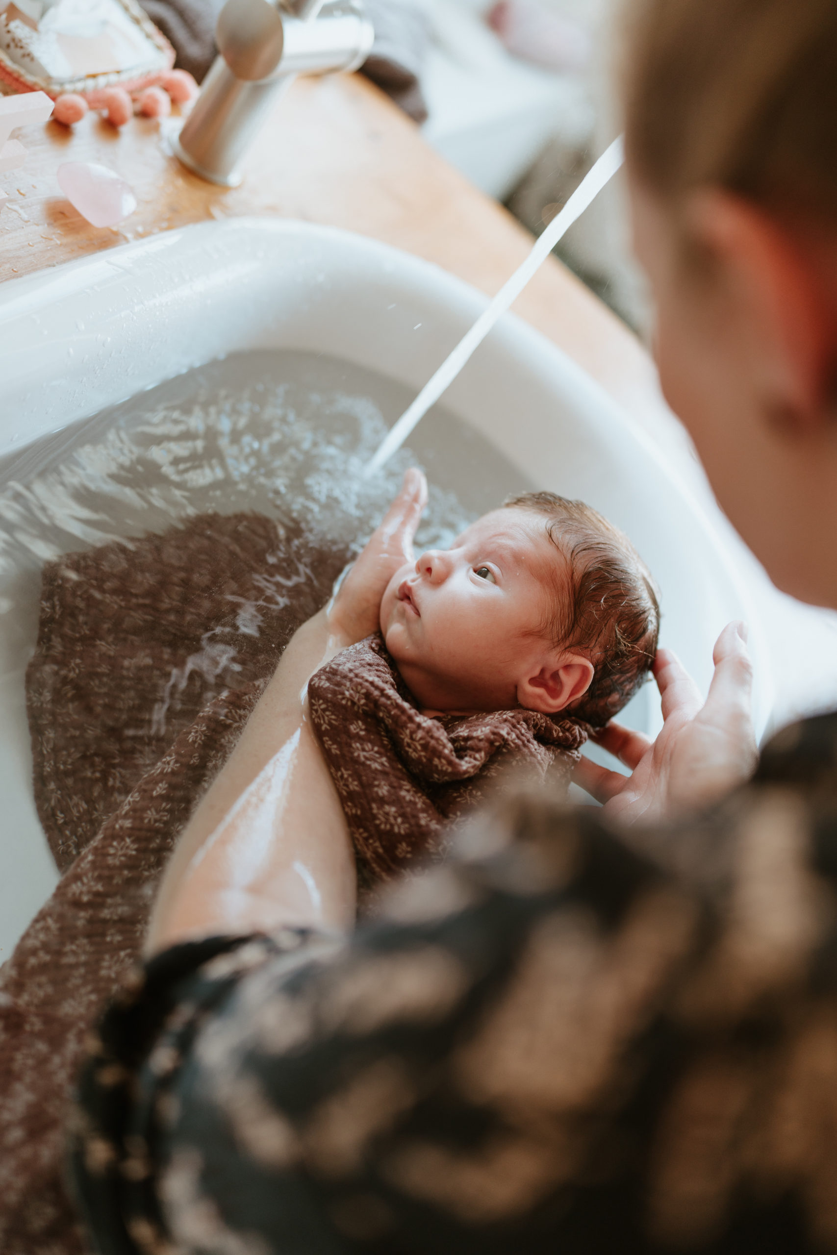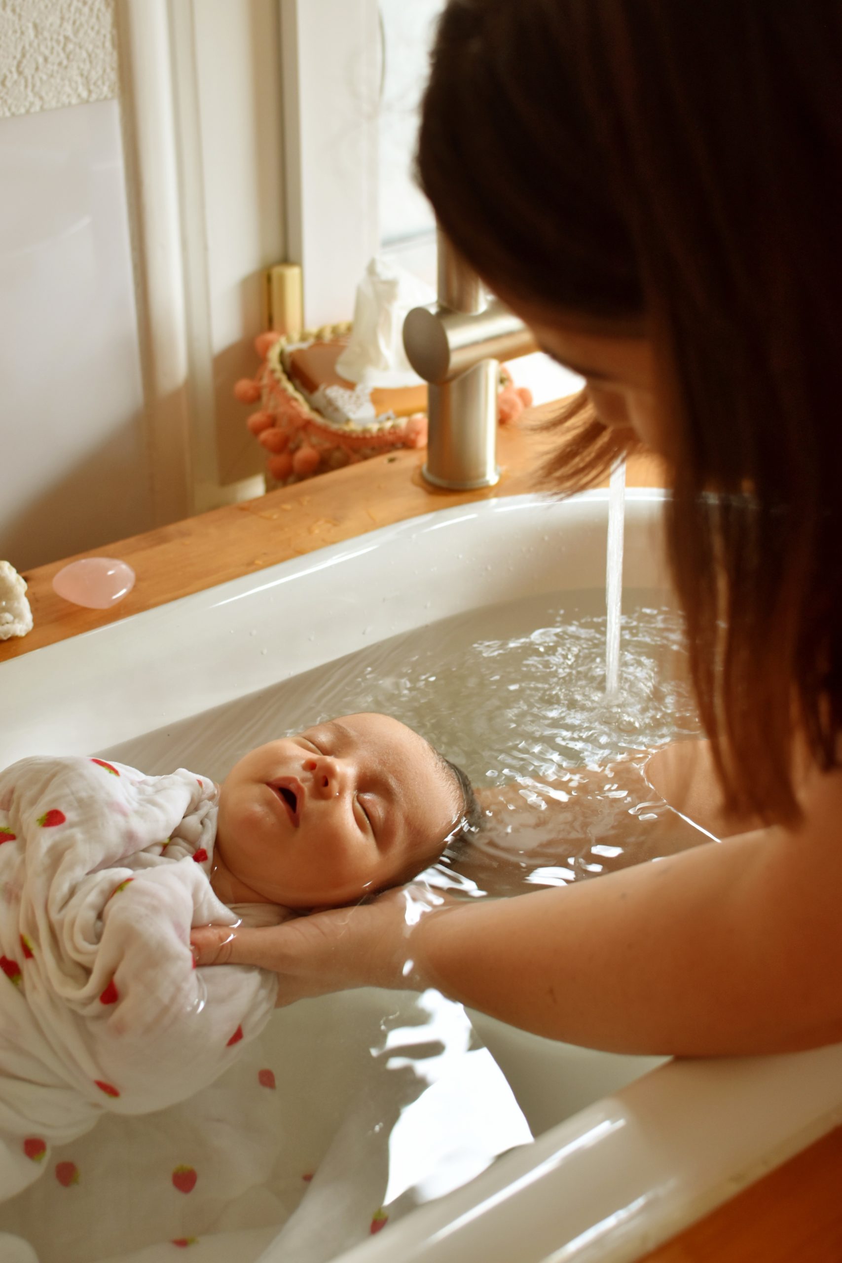 C’est bien plus qu’un simple bain… Un instant suspendu, un soin réparateur et libérateur d’émotions pour le bébé et les parents.