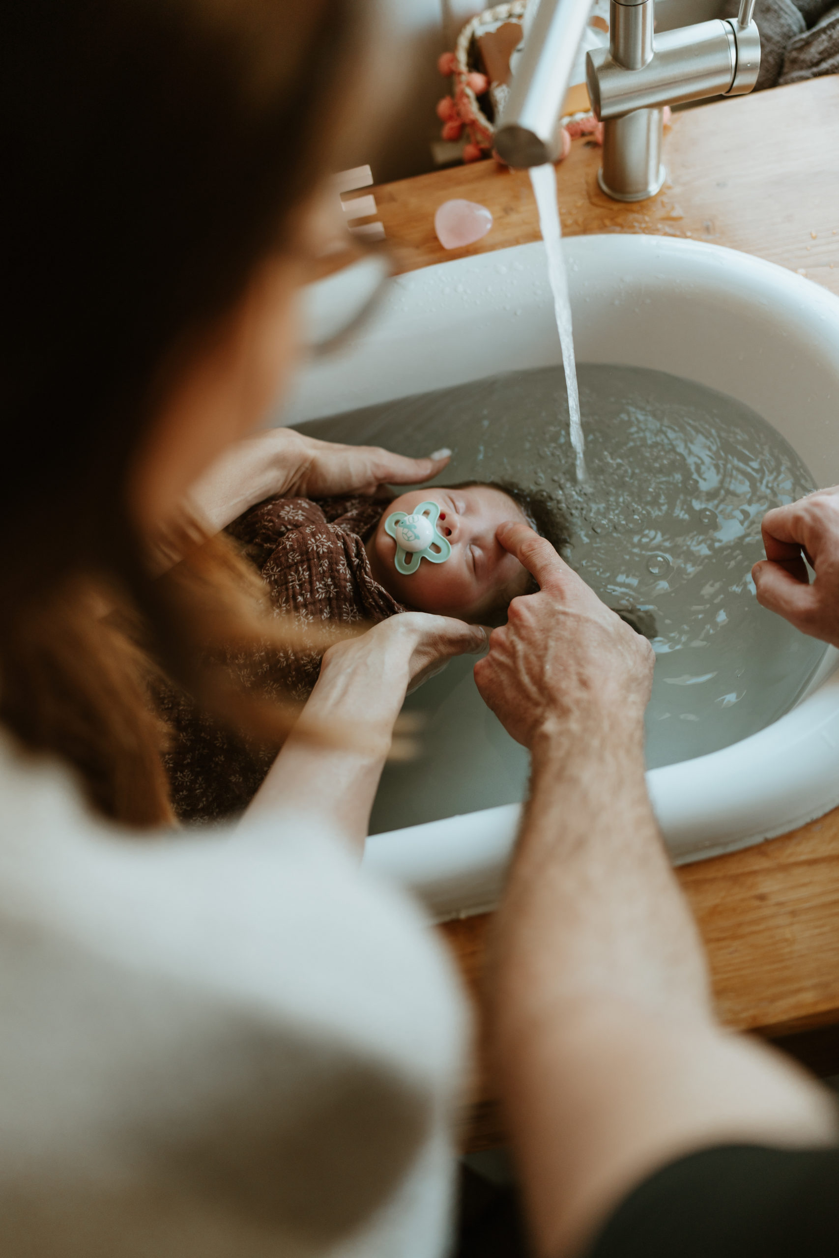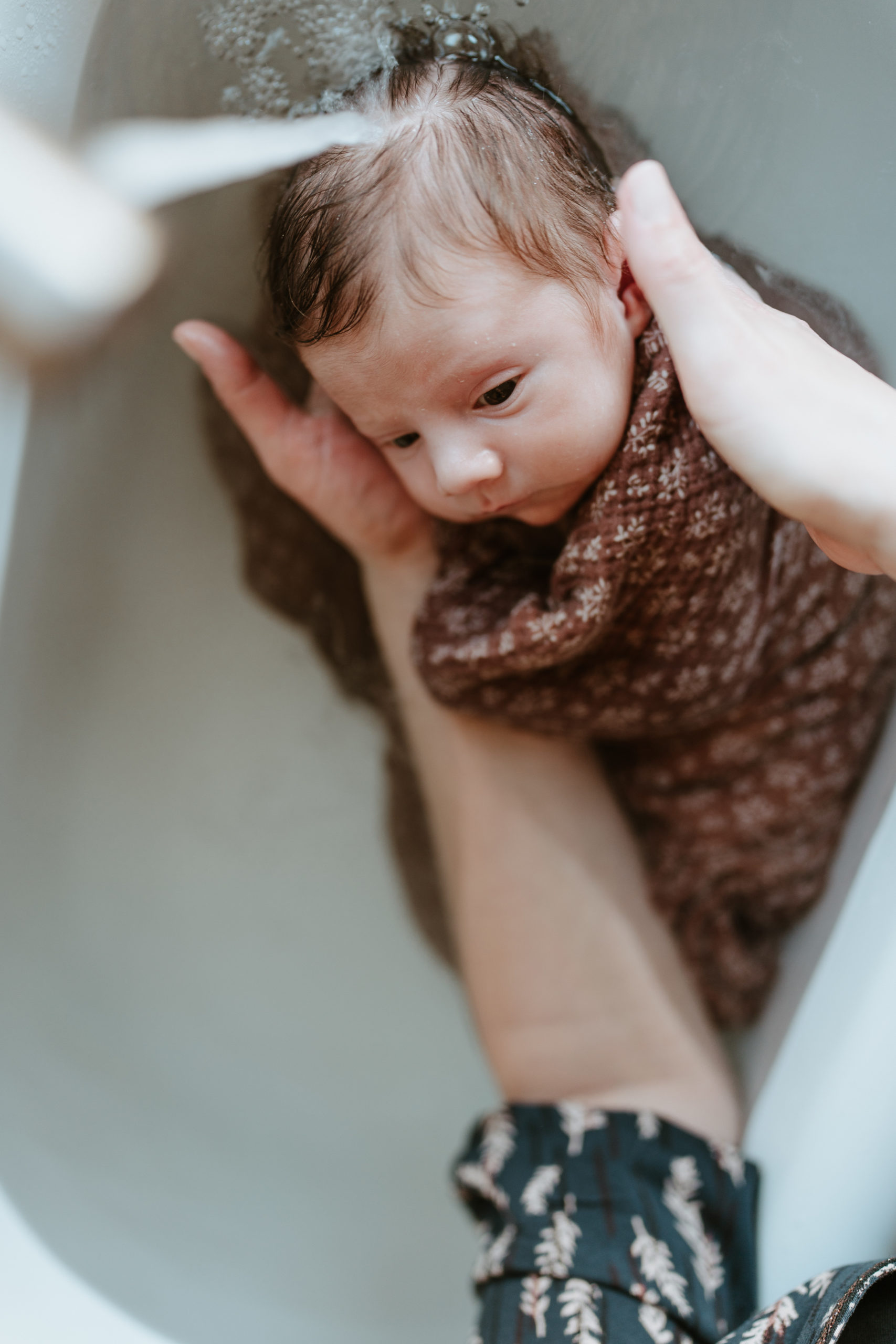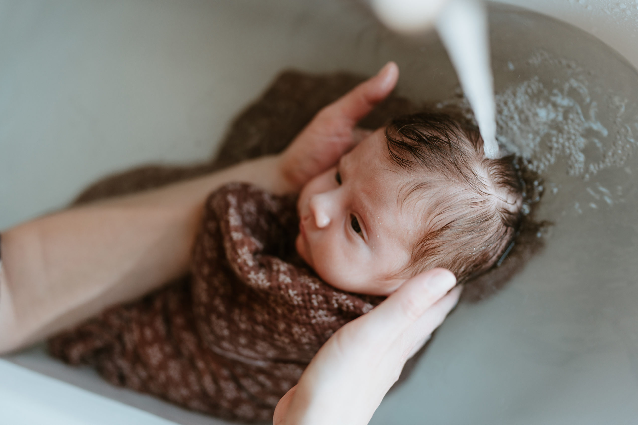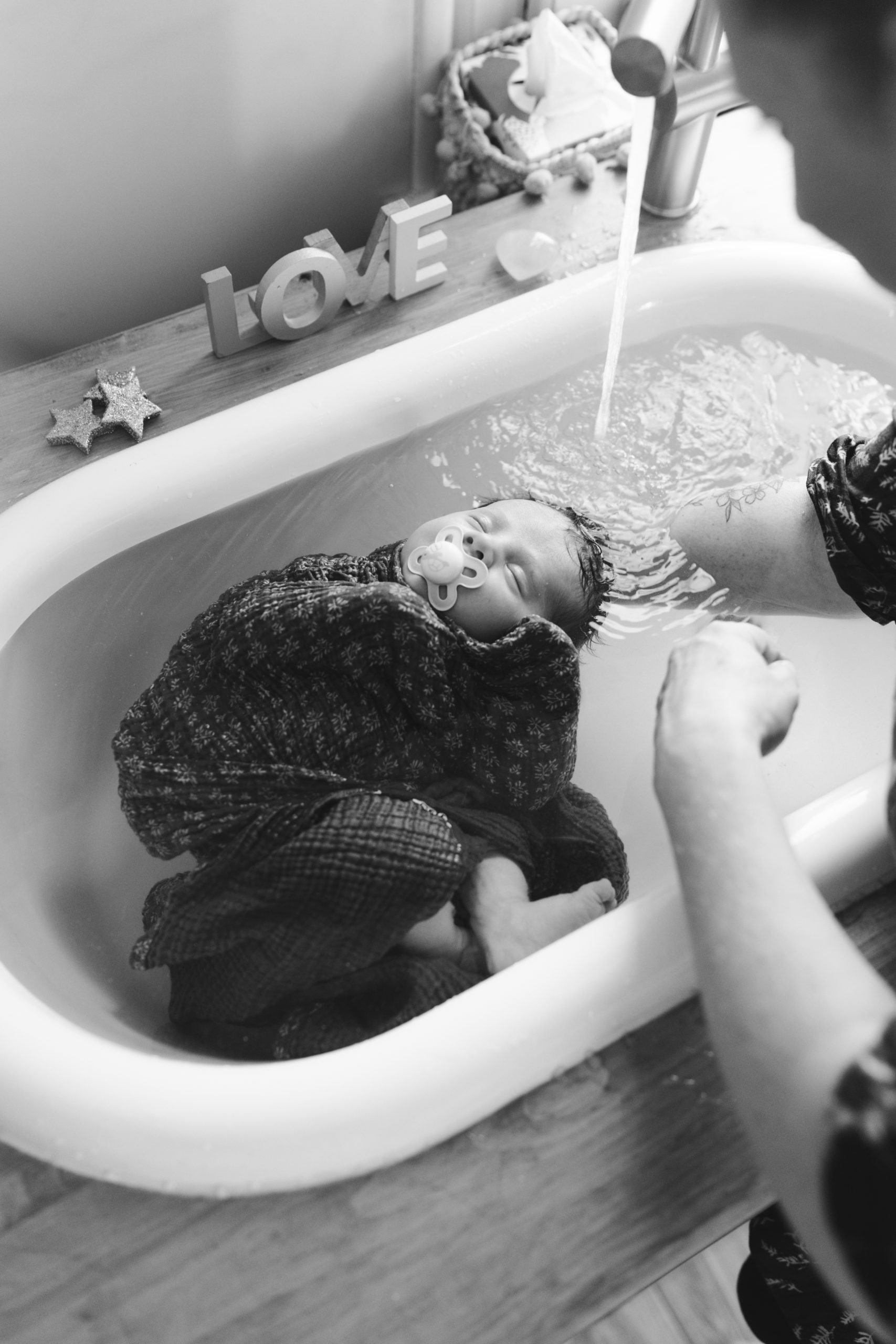 Leen Strebelle photographe de grossesse, nouveau-né, familles, couples vous propose d’immortaliser le thérapeutique bain bébé® de votre trésor :