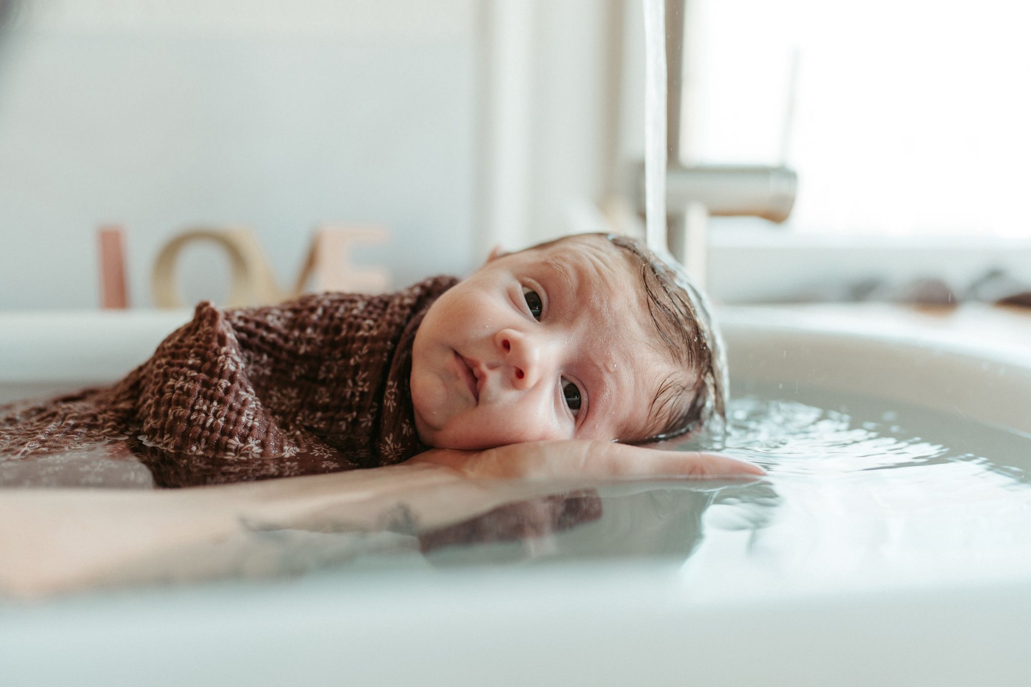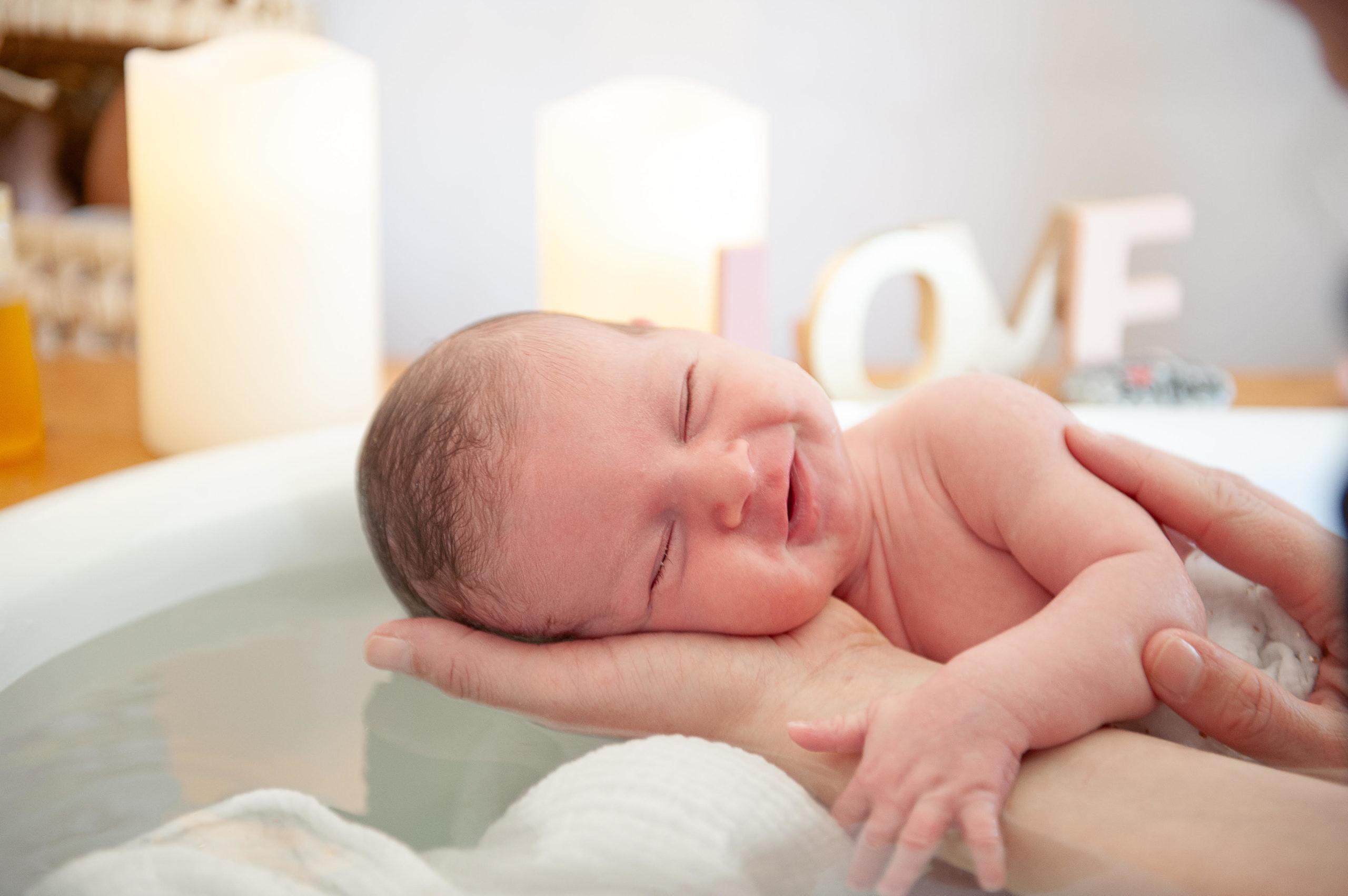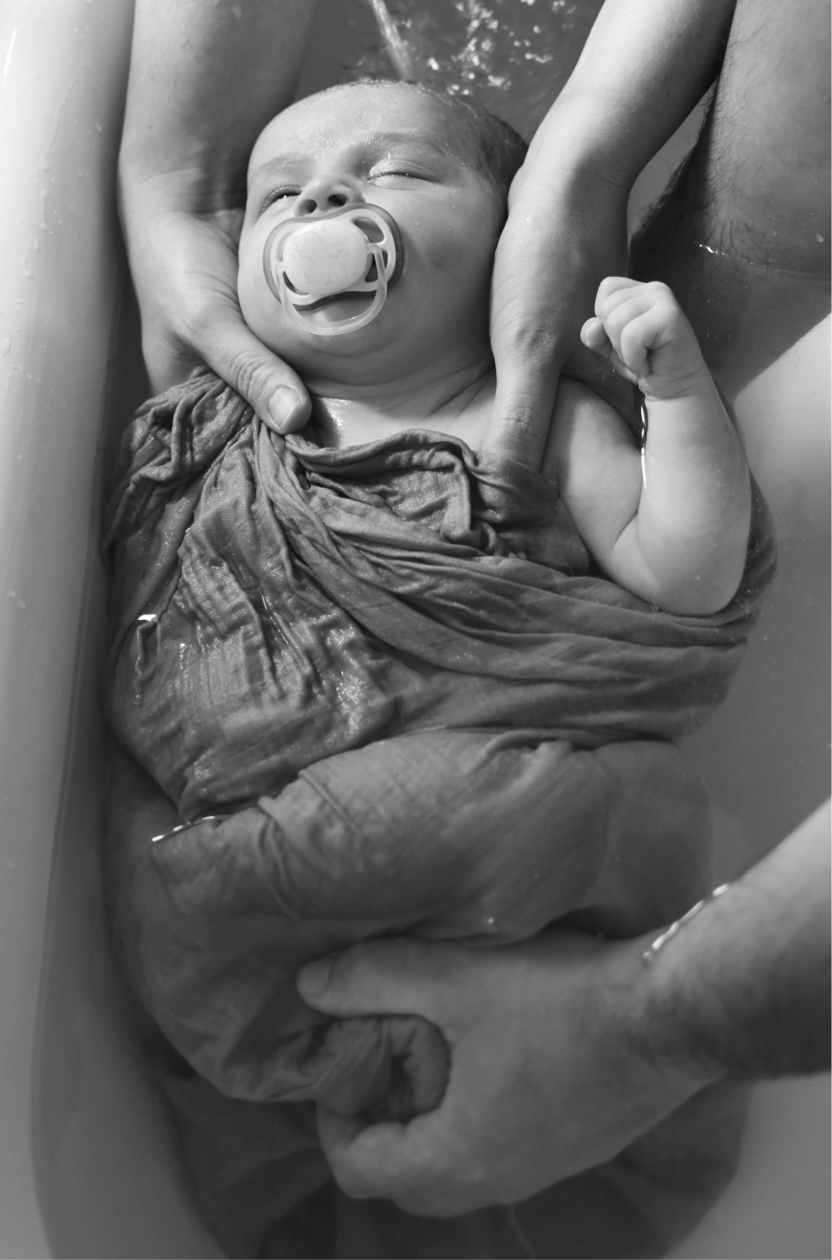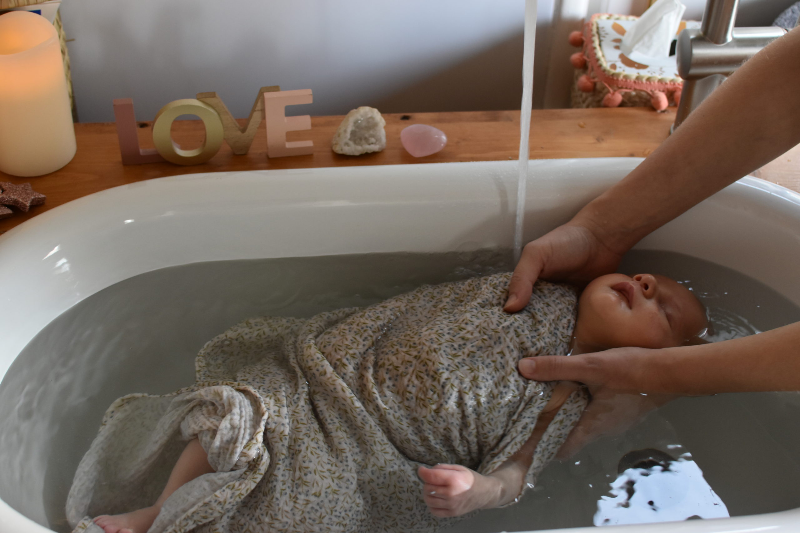 Particulièrement salvateur lors de parcours, vécus, grossesses difficiles émotionnellement, bébés nés prématuréments, des naissances rapides, longues, ou qui ne se sont pas passées comme vous l’auriez espréré ( césarienne, instruments,…). Emmailloté dans un lange, votre bébé retrouve ses sensations in-utéro, contenu comme dans le ventre de maman, il retrouve son élément : L’eau.